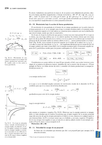 energía cinética, la potencial y la to- XI 11. Velocidad de escape de un proyectil