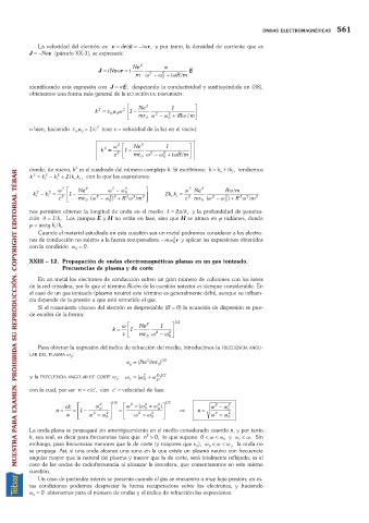 Si el rozamiento viscoso del electrón es despreciable (R ; 0) la ecuación de dispersión se pue-
