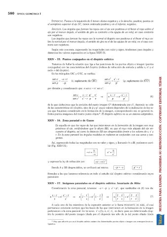 pertenezcan a la zona paraxial. En tal zona: s¢=f(s, n, n¢, r), es decir: para un determinado diop-