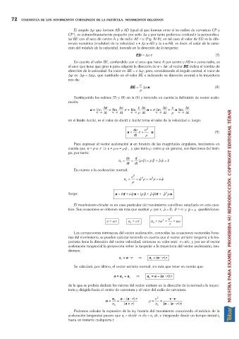 rias del movimiento, se pueden calcular teniendo en cuenta que el vector unitario tangente a la tra-