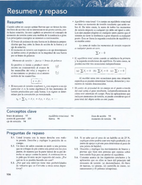Los principales conceptos se resumen a continuación: punto. Ésta se llama la segunda condición de equilibrio y