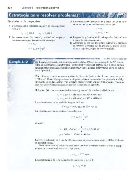Ejemplo 6.12 '.Se dispara un proyectil con una velocidad inicial de 80 m /s con un ángulo de 30° por en