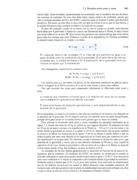 7.2 Relación entre peso y masa 141