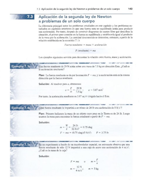 7.3 Aplicación de la segunda ley de Newton a problemas de un solo cuerpo 143