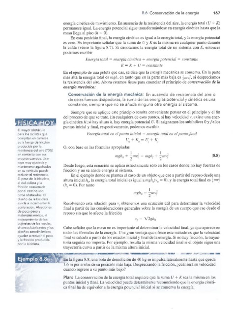 la caída (véase la figura 8.7). Si denotamos la energía total de un sistema con E, entonces