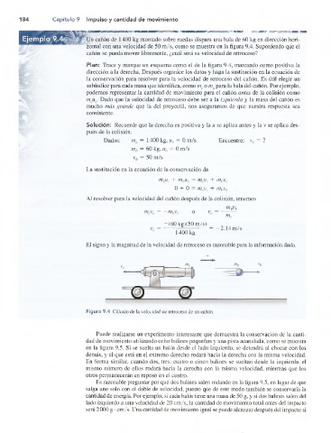 Figura 9.4 Cálculo de la velocidad de retroceso de un cañón.