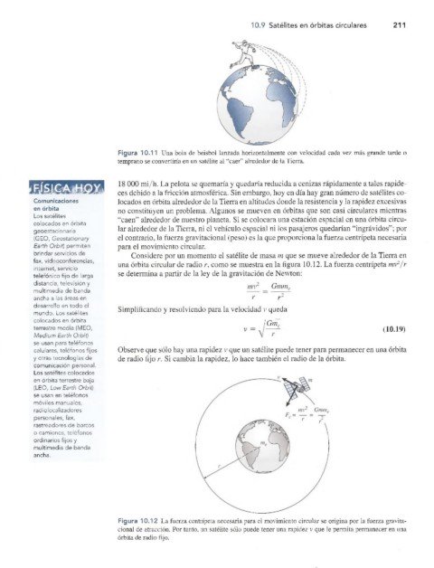 celulares, teléfonos fijos Observe que sólo hay una rapidez v que un satélite puede tener para permanecer en una órbita