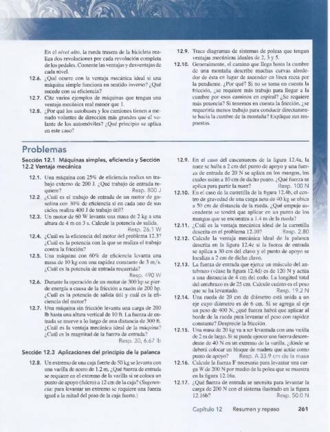 Sección 12.1 Máquinas simples, eficiencia y Sección 12.9. En el caso del cascanueces de la figura 12.4a, la