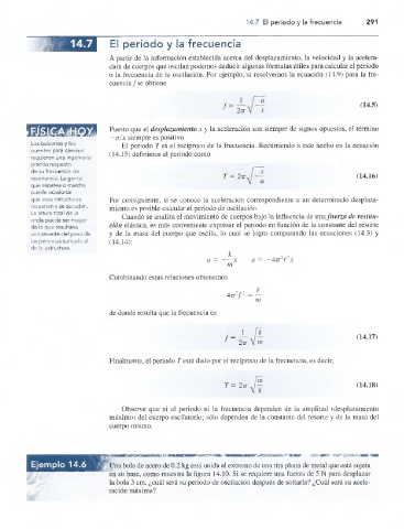 únicamente del peso de y de la masa del cuerpo que oscila, lo cual se logra comparando las ecuaciones (14.3) y