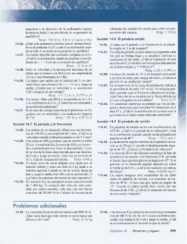 14.26. ¿Cuál es la aceleración máxima para el sistema descri 14.36. ¿Cuáles son el periodo y la frecuencia de un péndu