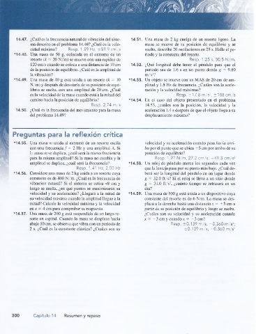 14.47. ¿Cuál es la frecuencia natural de vibración del siste 14.51. Una masa de 2 kg cuelga de un resorte ligero. La