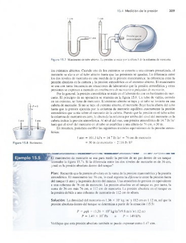 (consulte la figura 15.7). Si la diferencia entre los dos niveles de mercurio es de 36 cm,
