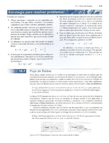 La figura 15.12 muestra las líneas de corriente de flujo de aire que pasan por dos obstáculos