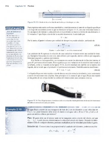 Figura 15.13 Cálculo de la velocidad de un fluido que circula por un tubo.