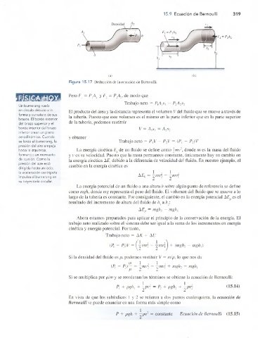 Figura 15.17 Deducción de la ecuación de Bernoulli.