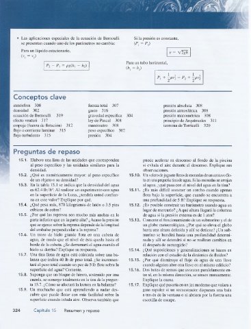 empuje (fuerza de flotación) 312 manómetro 308 teorema de Torricelli 320