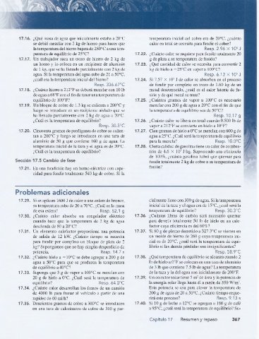 17.32. ¿Cuánto hielo a — 10°C se debe agregar a 200 g de 17.38. ¿Qué temperatura de equilibrio se alcanza cuando 2