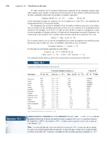 Las conductividades térmicas de diversos materiales se muestran en la tabla 18.1.