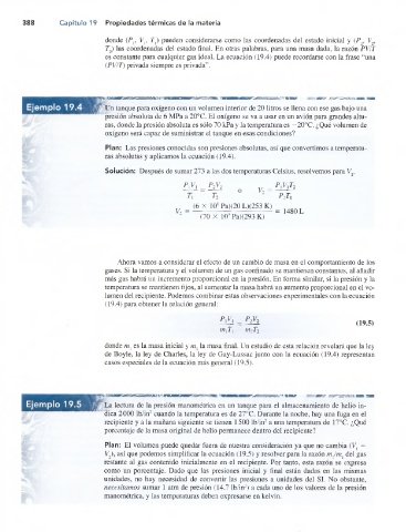 Ejemplo 19.4 w Un tanque para oxígeno con un volumen interior de 20 litros se llena con ese gas bajo una