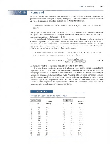 a partir de tablas de presión de vapor saturado. La tabla 19.1 ofrece una lista de presiones de