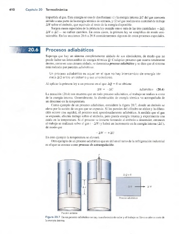 Como ejemplo de un proceso adiabático, considere la figura 20.7, donde un émbolo se