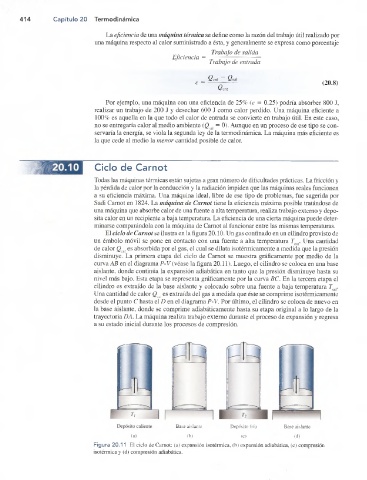El ciclo de Carnot se ilustra en la figura 20.10. Un gas confinado en un cilindro provisto de