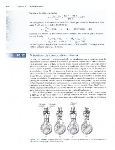 sobre el pistón. El proceso de cuatro tiempos se muestra en la figura 20.13. Durante la carre