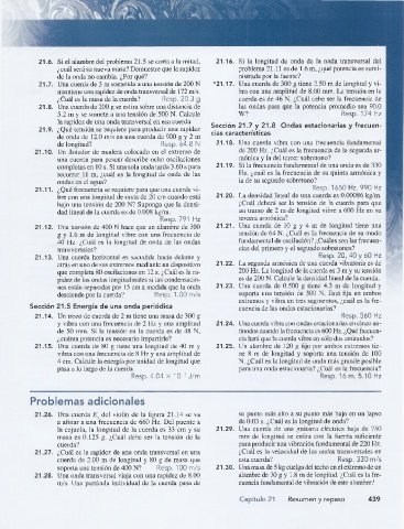 21.12. Una tensión de 400 N hace que un alambre de 300 21.21. Una cuerda de 10 g y 4 m de longitud tiene una