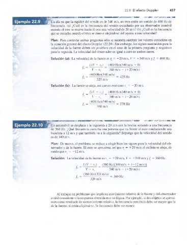 servador y de la fuente. El auto se aproxima, así que v = +20 m/s; el ciclista se aleja, de