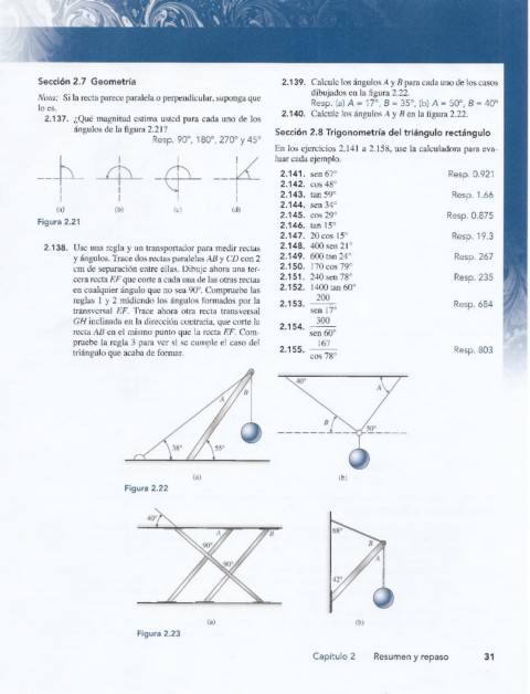 Sección 2.7 Geometría 2.139. Calcule los ángulos A y B para cada uno de los casos