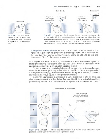 Figura 29.13 La fuerza magnética Figura 29.14 Uso de las reglas de la mano derecha y la mano izquierda para de