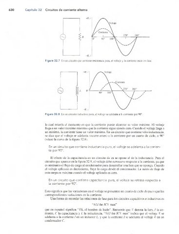 adelanta a la comente I en un inductor L, y que la corriente I se adelanta al voltaje % en un