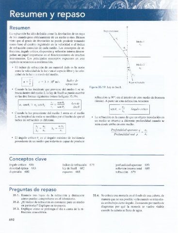 ángulo crítico 686 índice de refracción 679 profundidad aparente 690