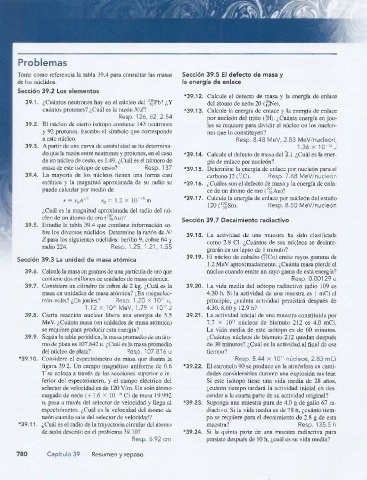 Tome como referencia la tabla 39.4 para consultar las masas Sección 39.5 El defecto de masa y