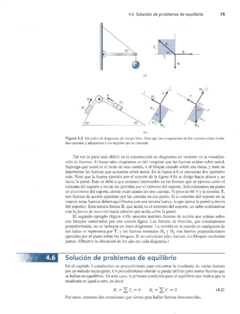 Figura 4.8 Ejemplos de diagramas de cuerpo libre. Note que las componentes de los vectores están rotula