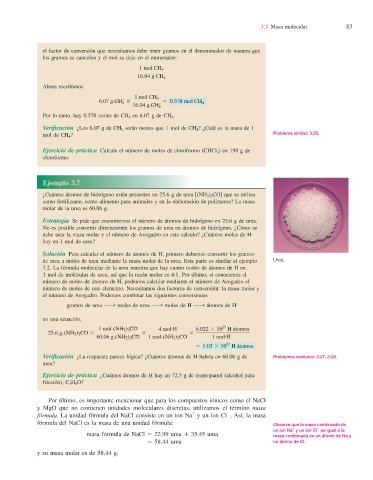 Verifi cación ¿La respuesta parece lógica? ¿Cuántos átomos de H habría en 60.06 g de Problemas similares: 3.27, 3.28.