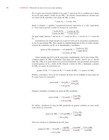 de gas H 2 para formar 2 moles de gas NH 3 ”. En cálculos estequiométricos, decimos que