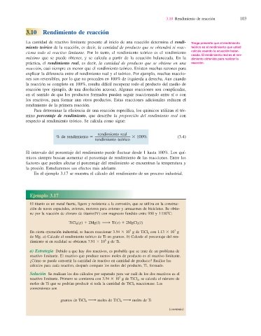 En el ejemplo 3.17 se muestra el cálculo del rendimiento de un proceso industrial.