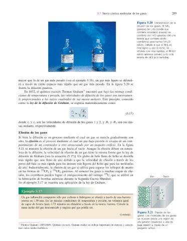 rá a través de cierto espacio más rápido que un gas más pesado. En la fi gura 5.20 se