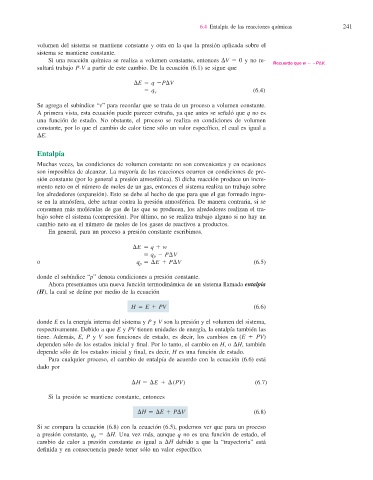 respectivamente. Debido a que E y PV tienen unidades de energía, la entalpía también las