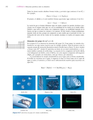 agua; el calcio, el estroncio y el bario son lo sufi cientemente reactivos para reaccionar con