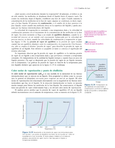 lan (fi gura 11.34). La presión de vapor de equilibrio es la presión de vapor medida Animación