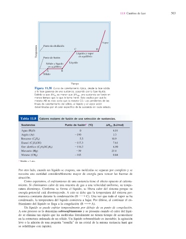 Tabla 11.8 Calores molares de fusión de una selección de sustancias.