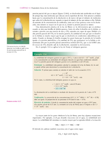 Efervescencia de una bebida En el ejemplo 12.6 se aplica la ley de Henry al nitrógeno gaseoso.