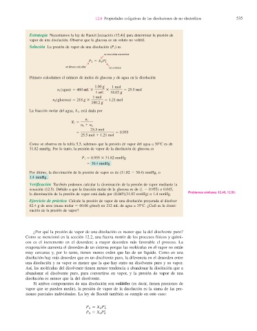 Verifi cación También podemos calcular la disminución de la presión de vapor mediante la