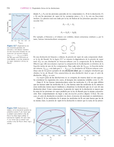 ideal debido a que las presiones ce la ley de Raoult. En la fi gura 12.7 se muestra la dependencia de la presión de vapor