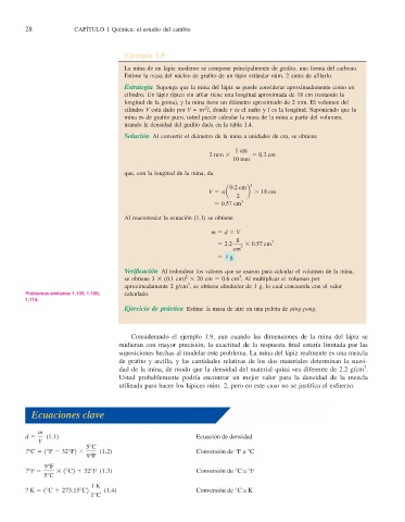 Considerando el ejemplo 1.9, aun cuando las dimensiones de la mina del lápiz se