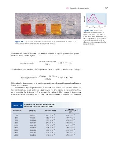 Figura 13.3 De izquierda a derecha: la disminución en la concentración de bromo en el absorción, que es proporcional a