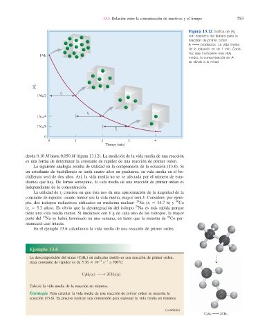 desde 0.10 M hasta 0.050 M (fi gura 13.12). La medición de la vida media de una reacción