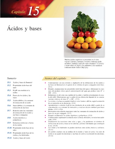 15.4 Fuerza de los ácidos y las • Defi niremos al pH como una medida de la acidez y también presentaremos la esca-